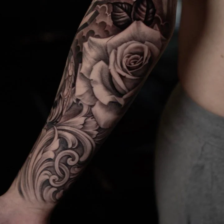 Not only does Nick have the artistic ability to create beautiful and unique tattoos, specialized for each client, but he also has an impressive ability to take a broad idea, and narrow it into an impressively, unexpected, and thought provoking piece. Kind, knowledgable, and open to ideas, Nick always puts his clients first, and is sure to produce tattoos that will impress for a lifetime.”